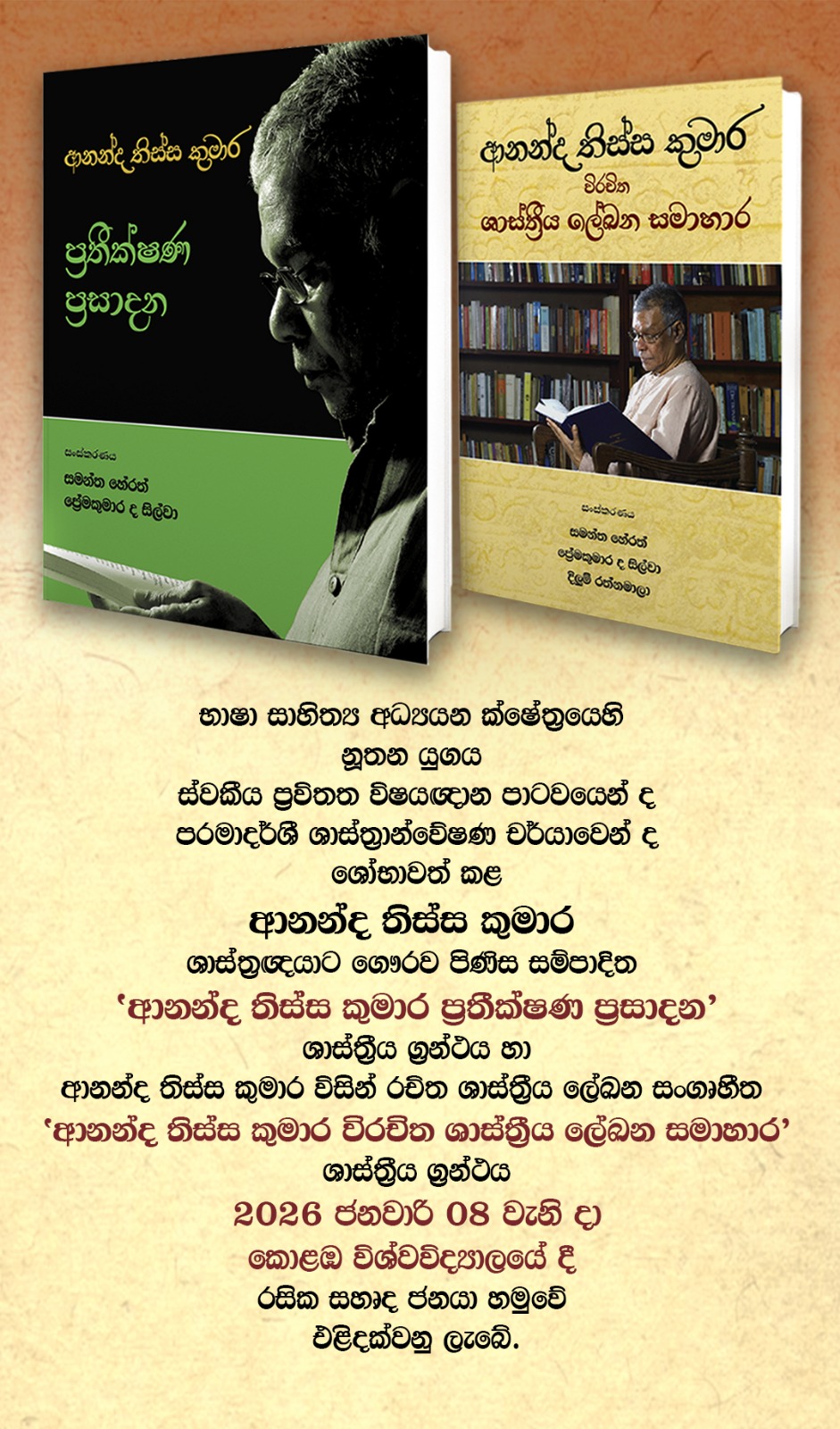 Both publications have been compiled and published with the corporation of the family members of Professor Tissa Kumara. These two publications will be launched at the felicitation ceremony which will be held on 08.01.2026 at the NAT.